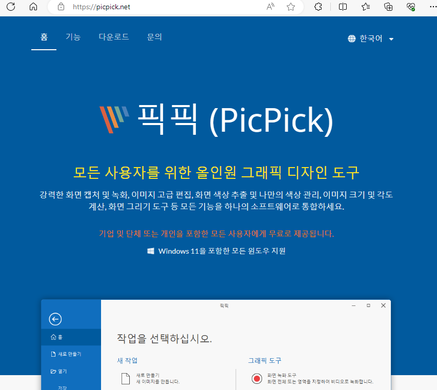 픽픽은 영상녹화및 화면 캡처 전문 프로그램으로 무료로 다운로드 사용가능합니다.