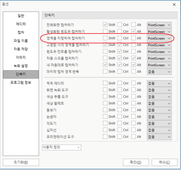 저는 옵션에서 단축키로 들어가 영역을 지정하여 캡처하기를 가장 유용하게 쓰고 있습니다.